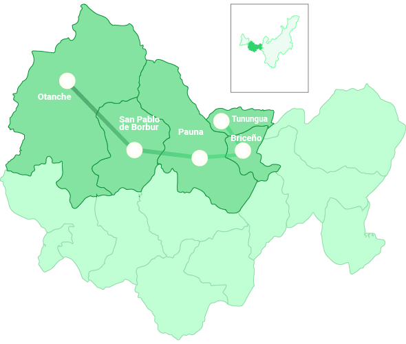 El primer corredor une los municipios de Otanche, San Pablo de Borbur, Pauna, Tununguá y Briceño. Este corredor se encuentra en una ubicación geoespacial privilegiada por la conexión que tiene con el Departamento de Santander y por el PNR Serranía de Las Quinchas.
